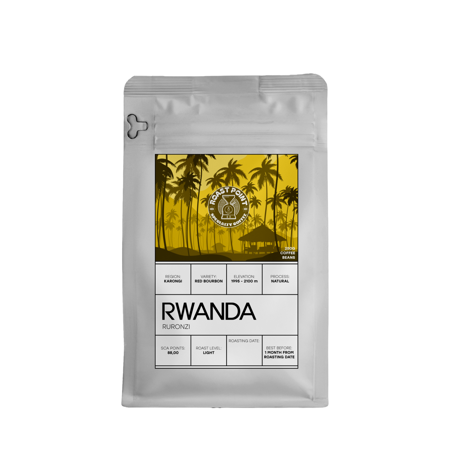 Кафе от фермата Руронзи в Руанда, отгледано от Узил Хабимана – производител с дълбока връзка към земята и силен фокус върху устойчивото земеделие. Сорт Red Bourbon, обработен по натурален метод с бавно сушене на слънце в продължение на 45 дни.